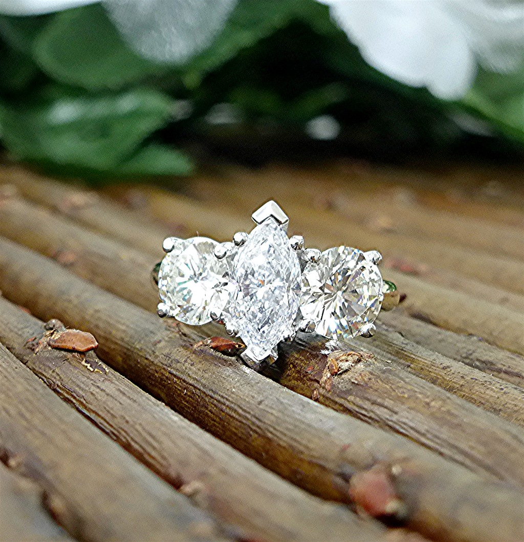 A custom made two tone 14k gold is made to house three one carat diamonds.